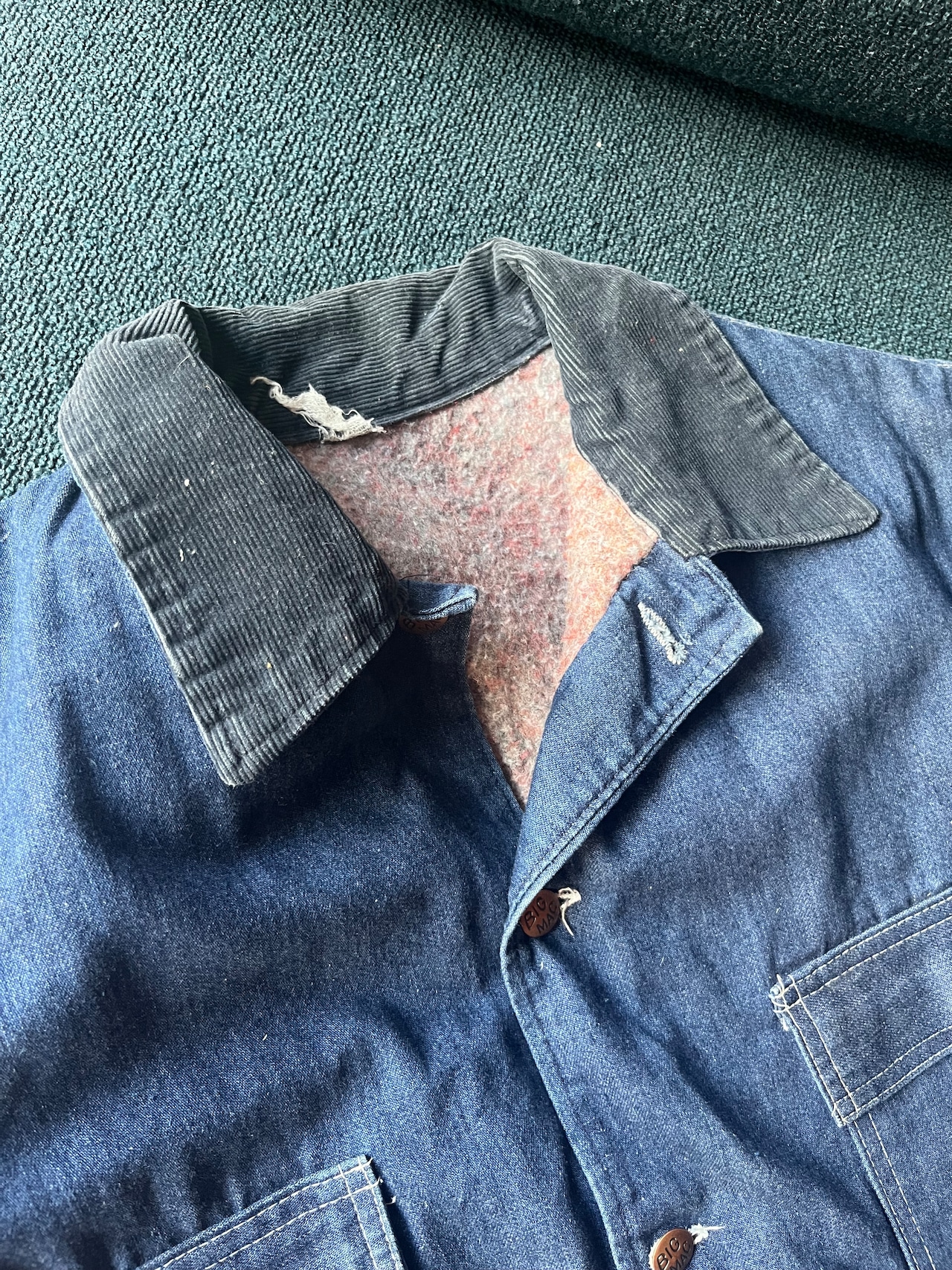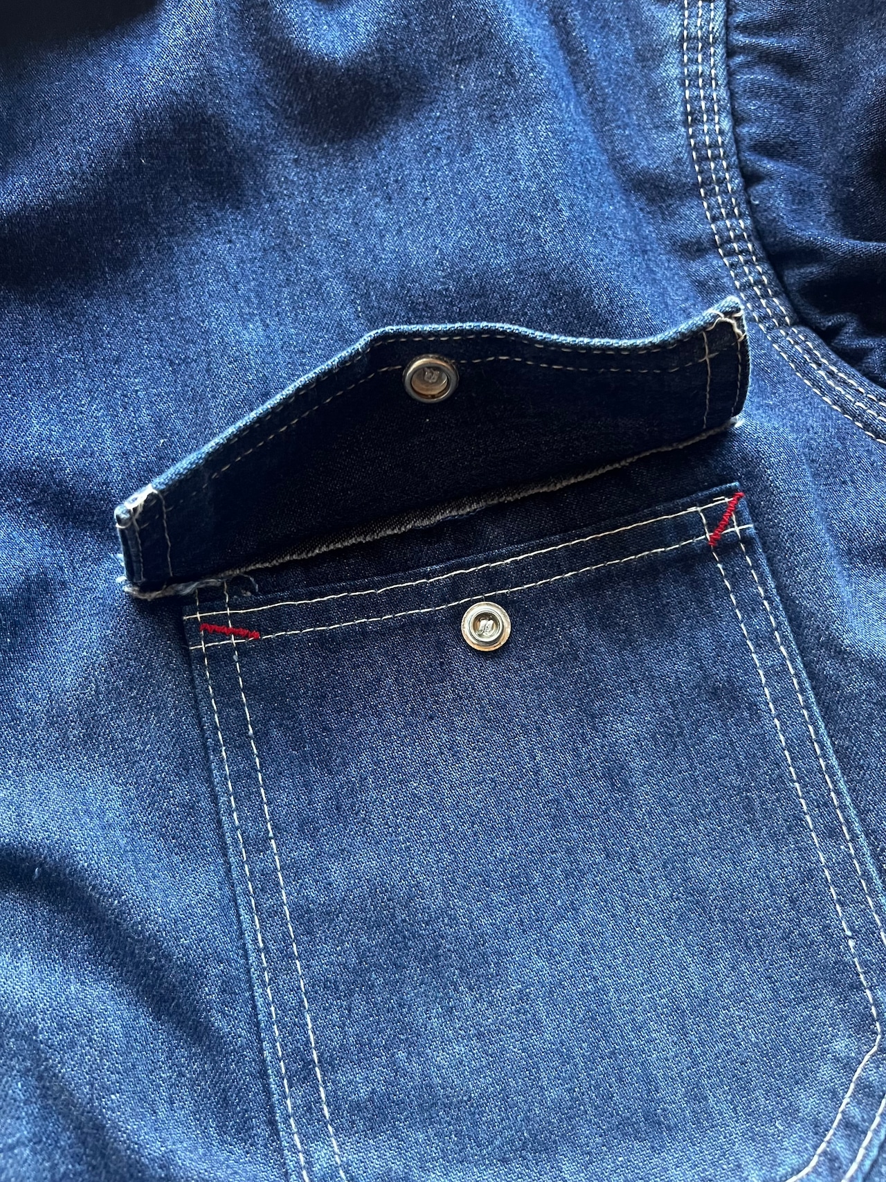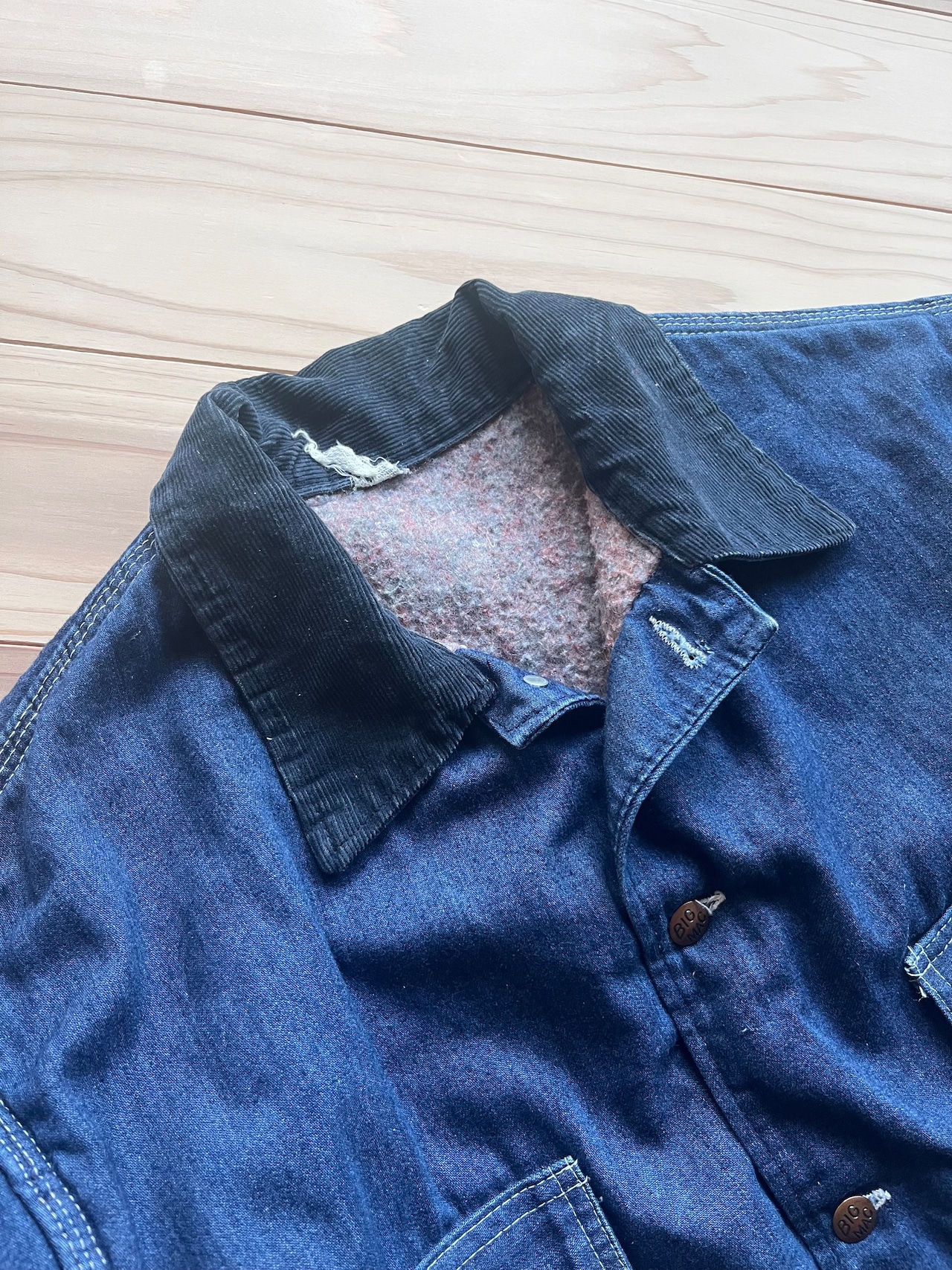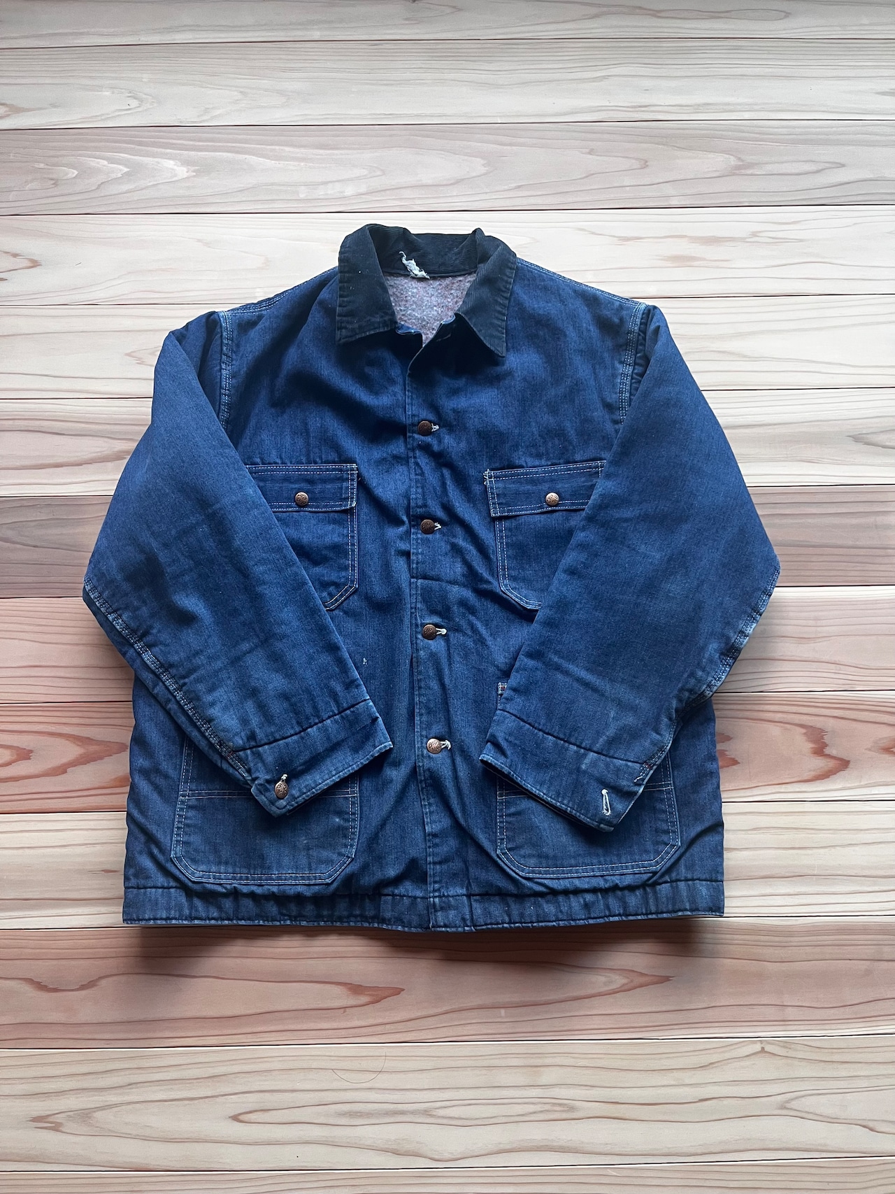 本品は、無骨なデニム地に4つの大容量ポケット、そしてコーデュロイの襟を備えたクラシックな一着。