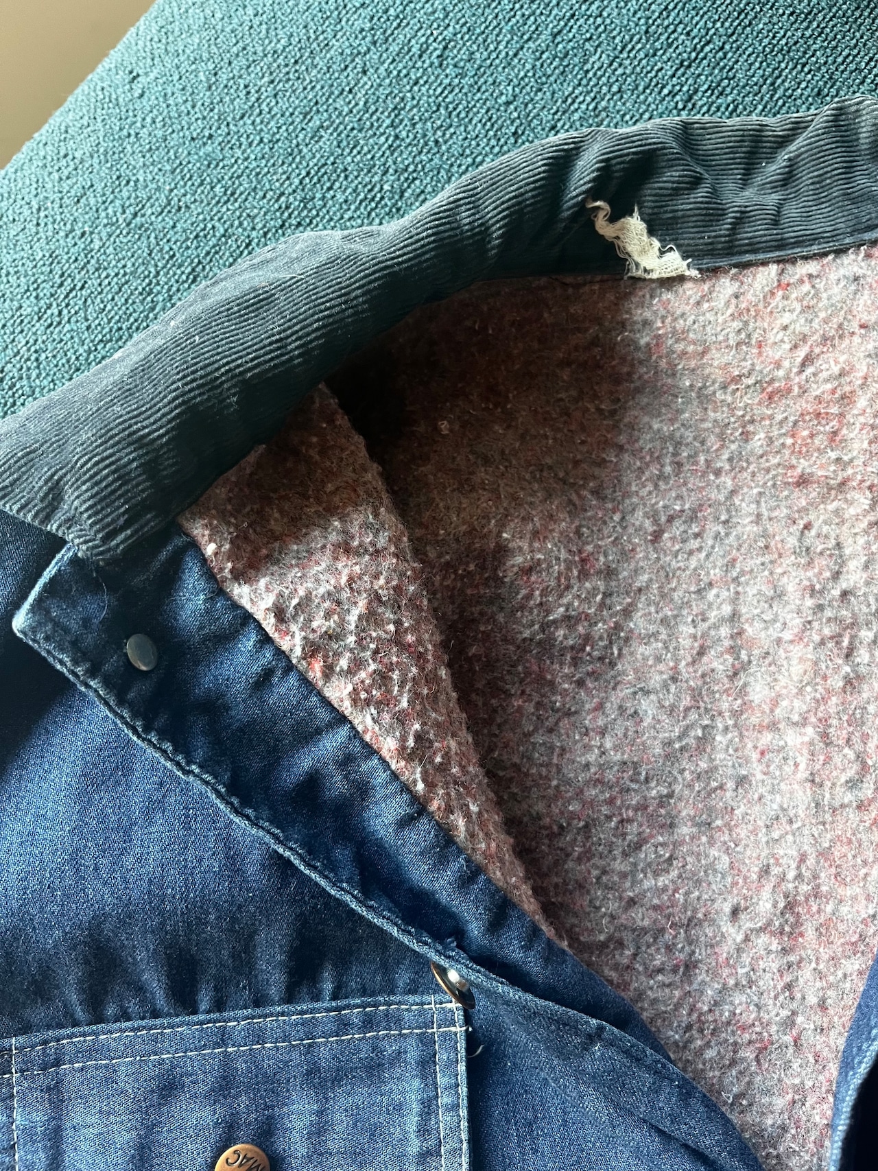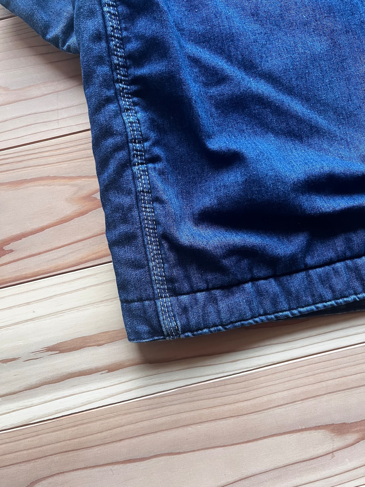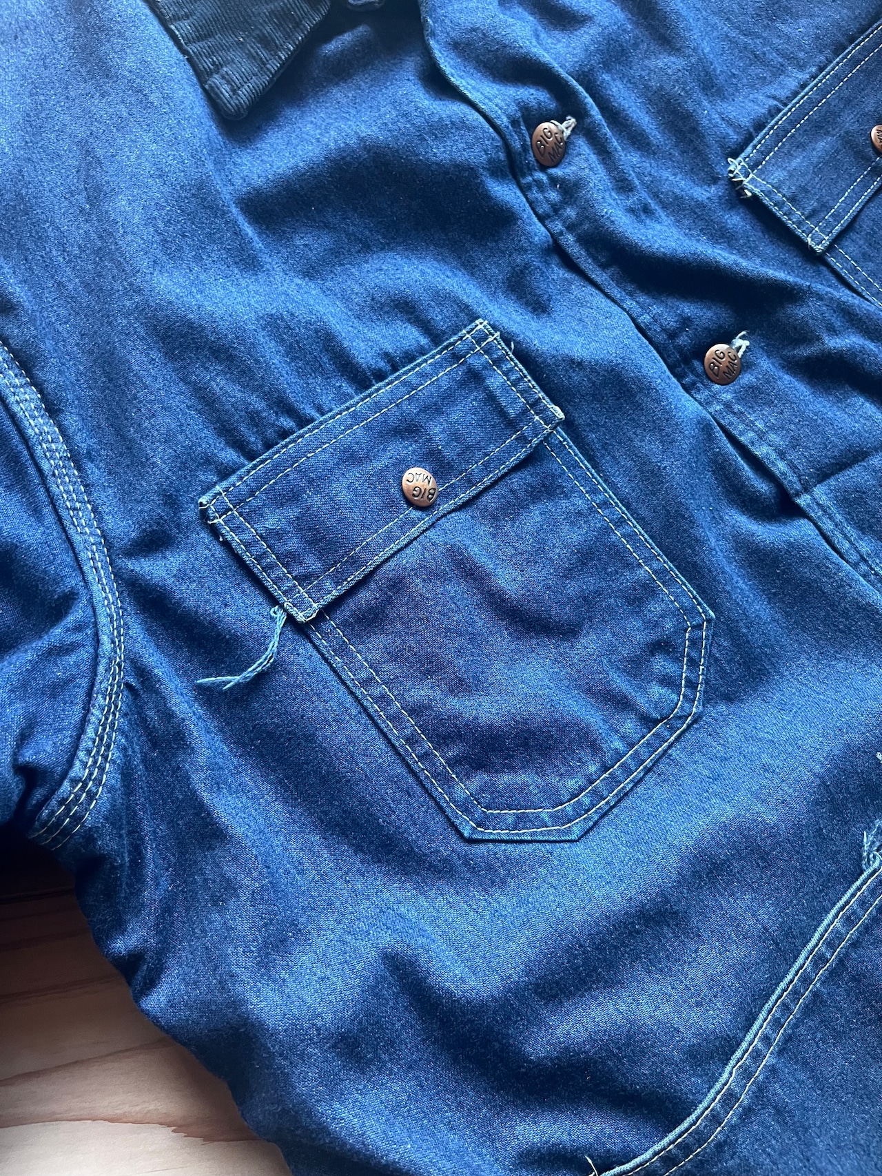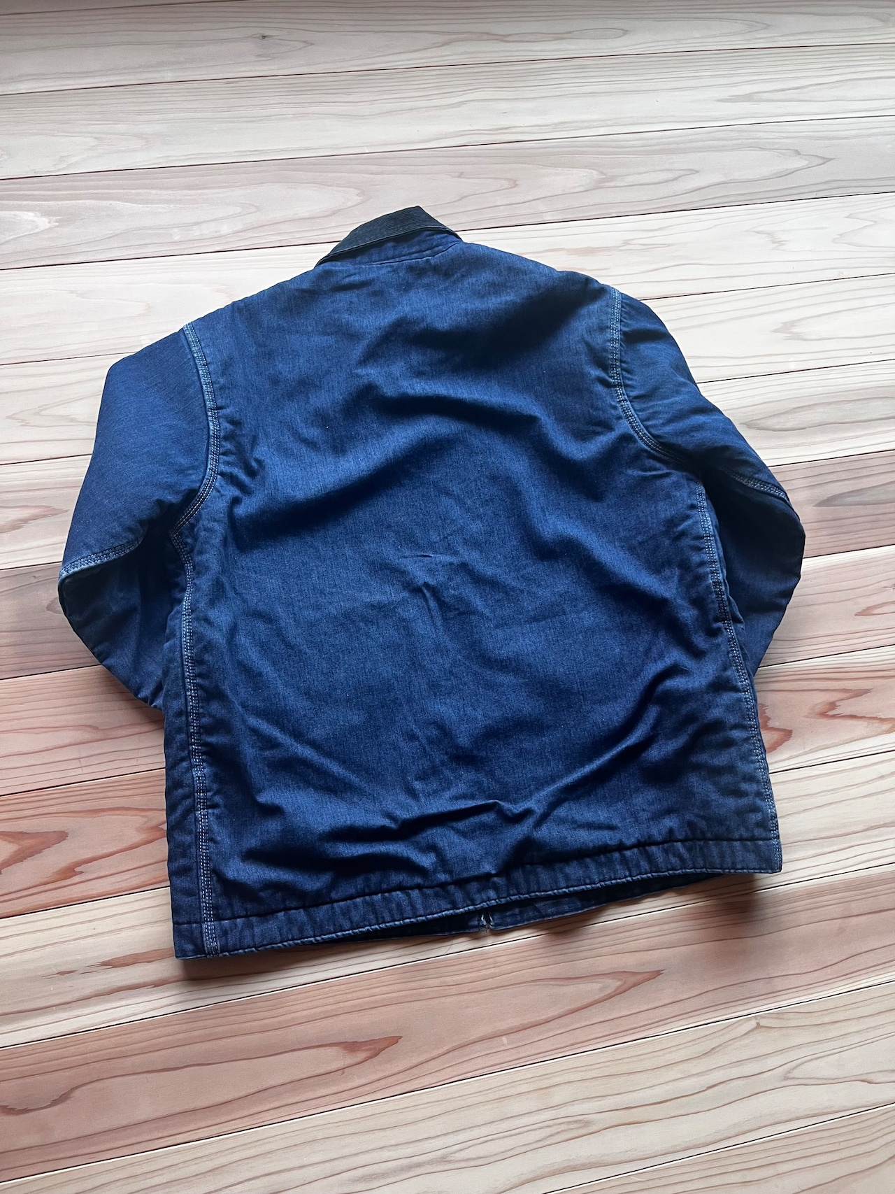 本品は、無骨なデニム地に4つの大容量ポケット、そしてコーデュロイの襟を備えたクラシックな一着。