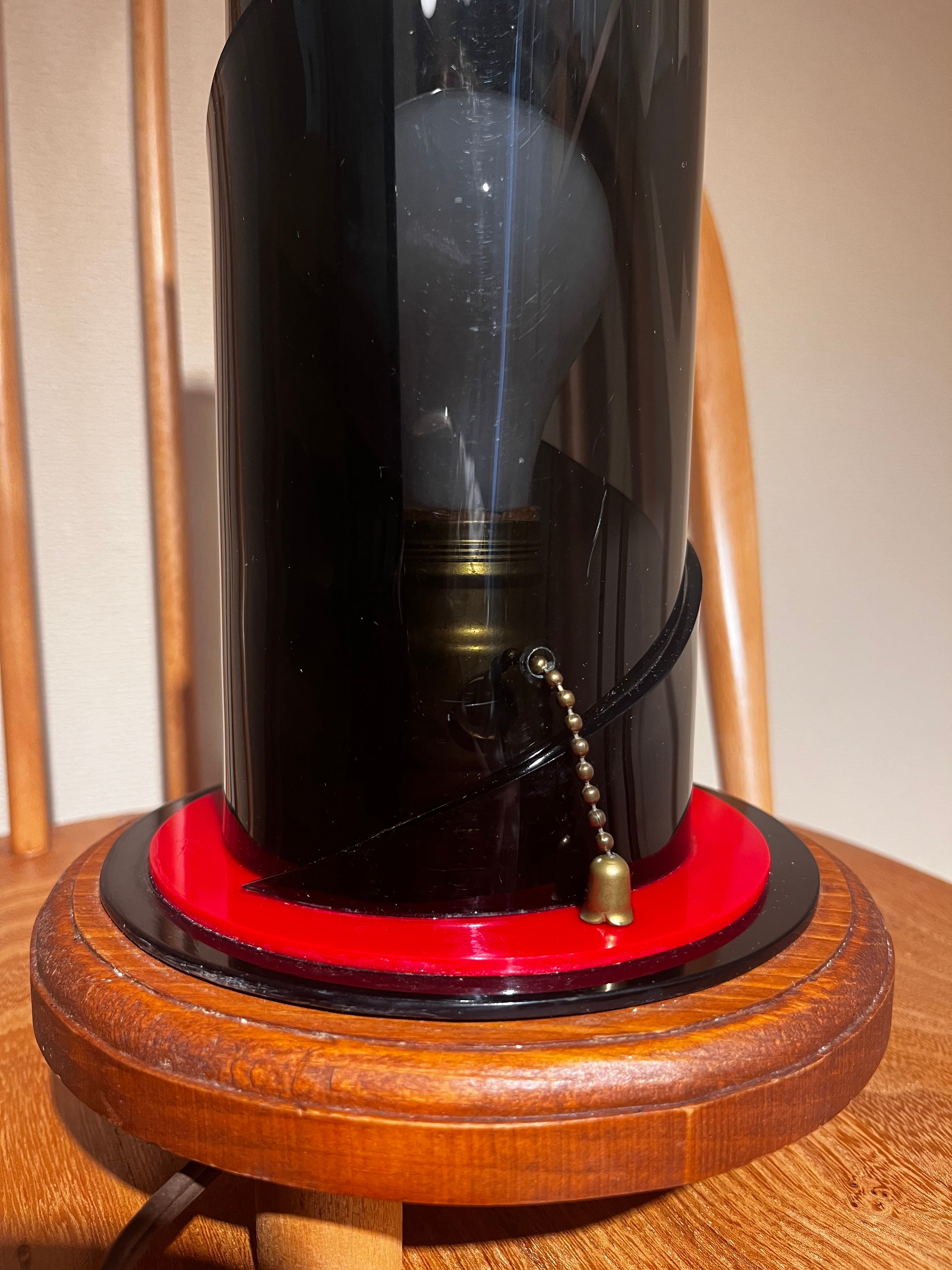 スモーキーな螺旋状のシェードは、存在感バッチリです。ベース部の赤色も効いてますね。