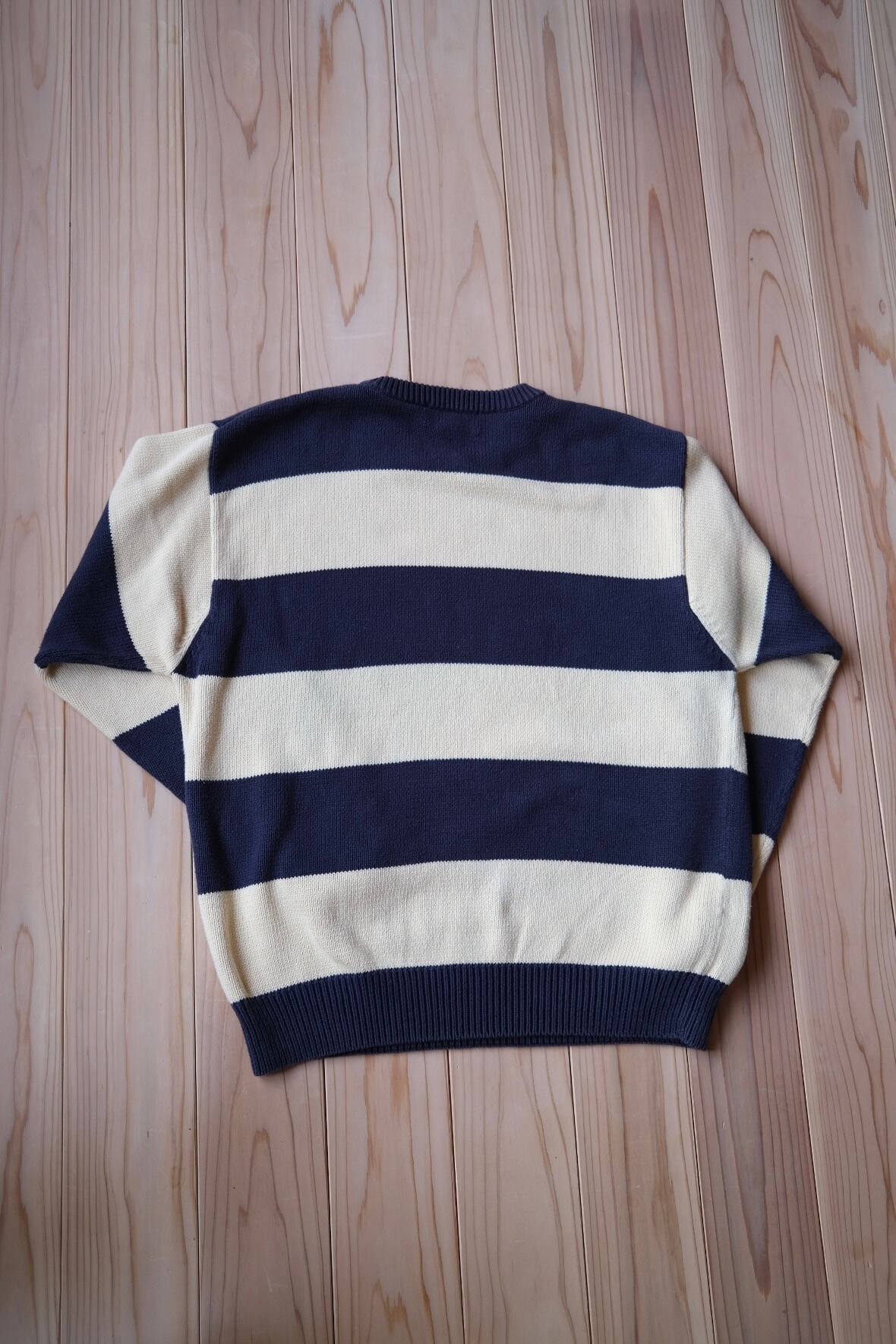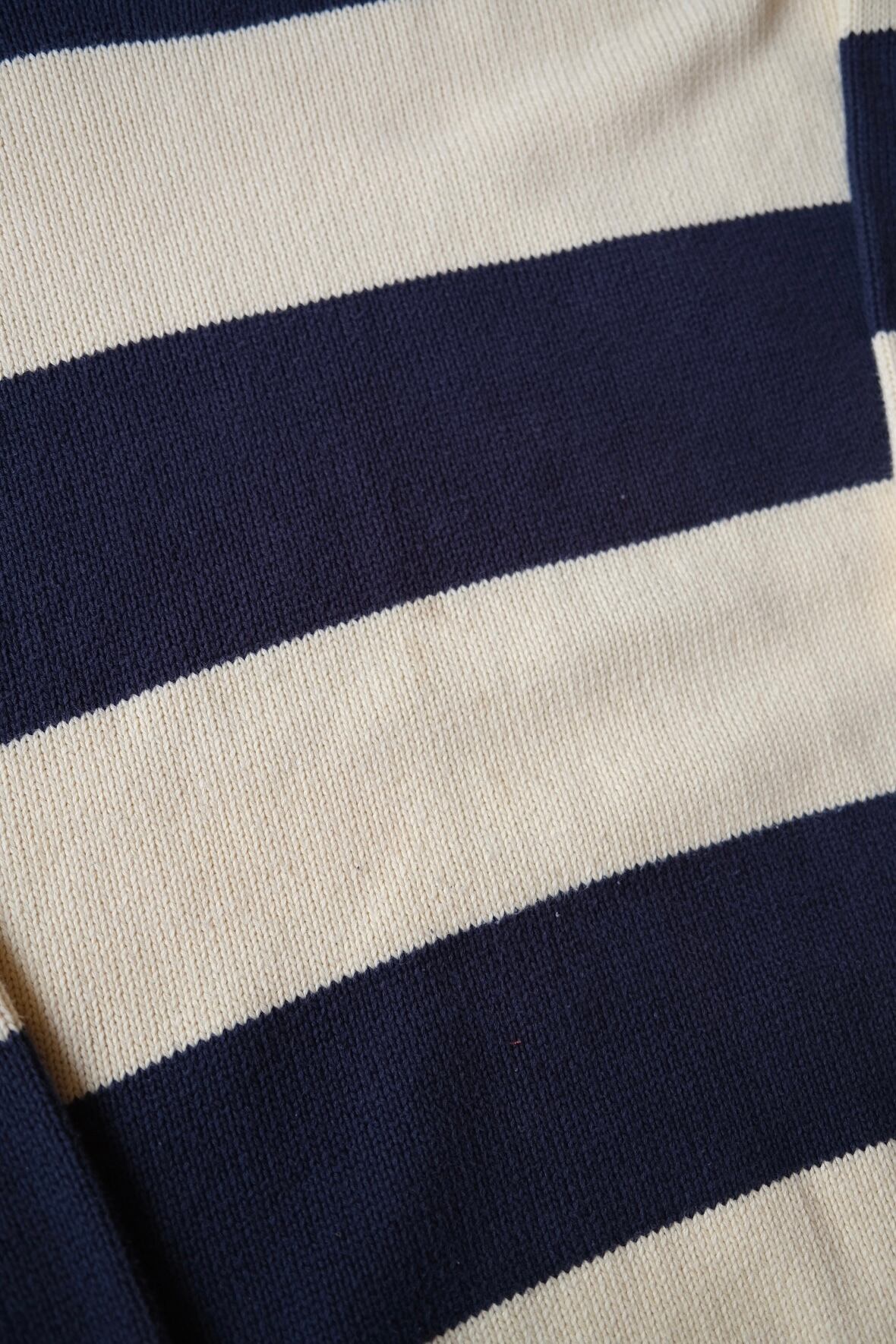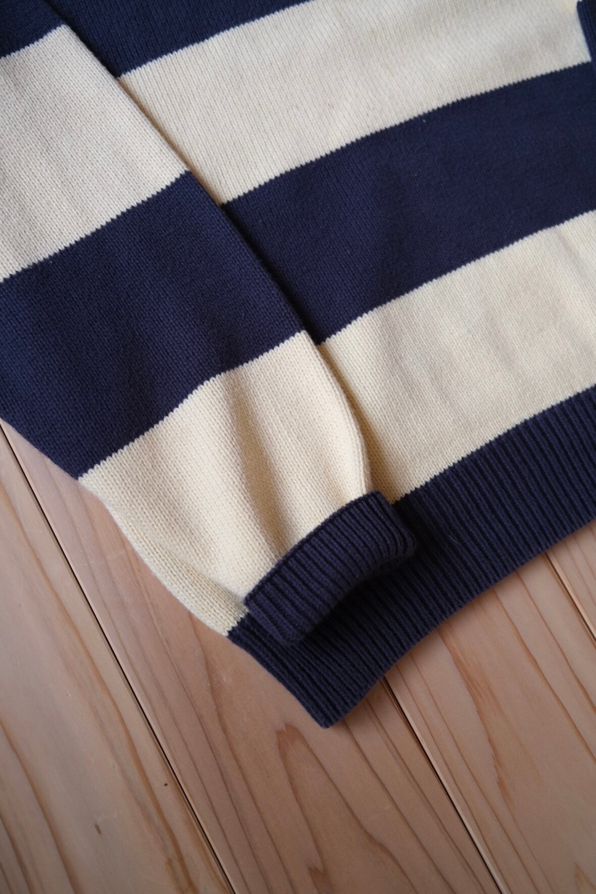 ざっくり着たい太いボーダーのコットンニット。アイボリー×ネイビーでほっこり。