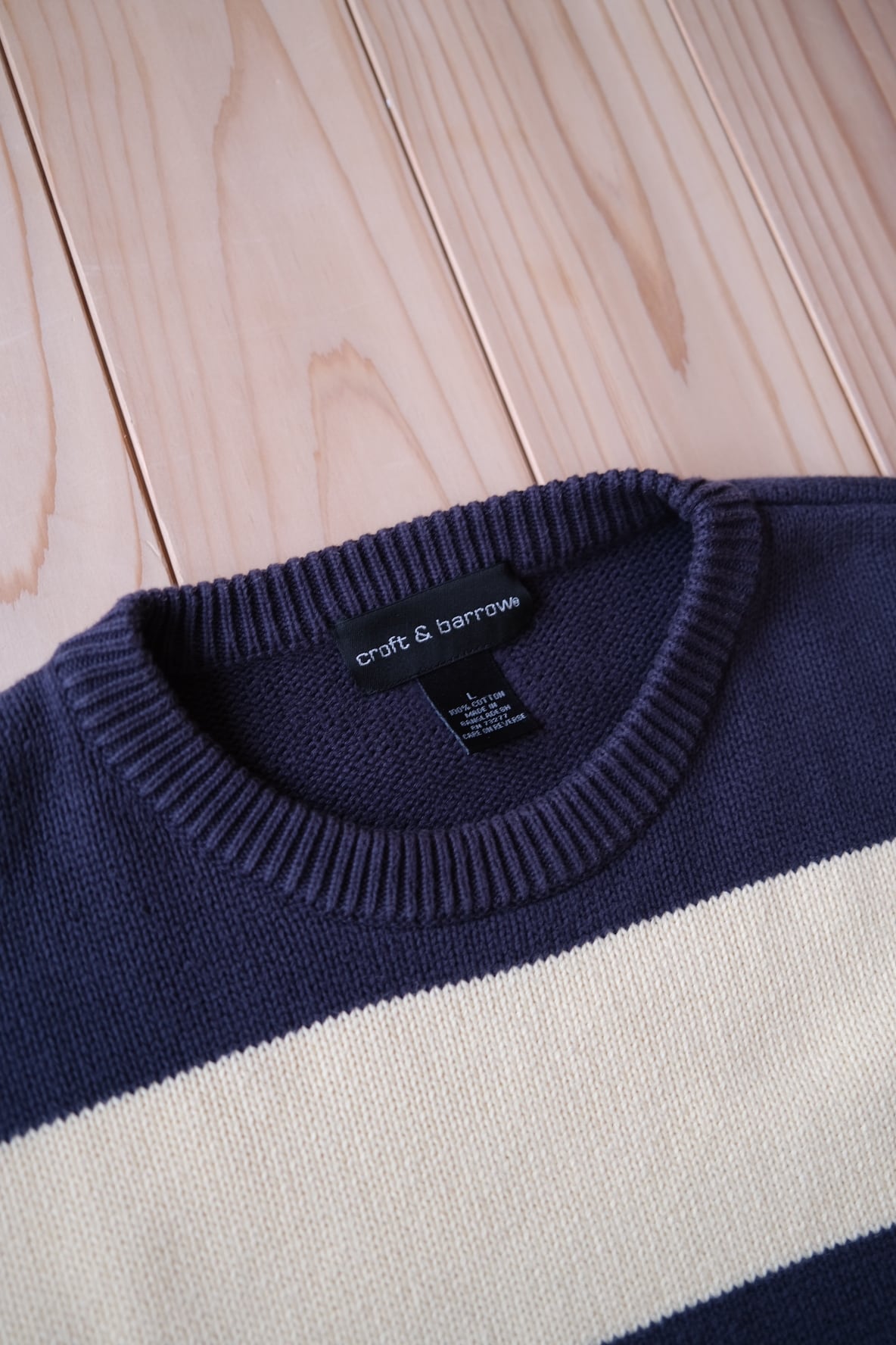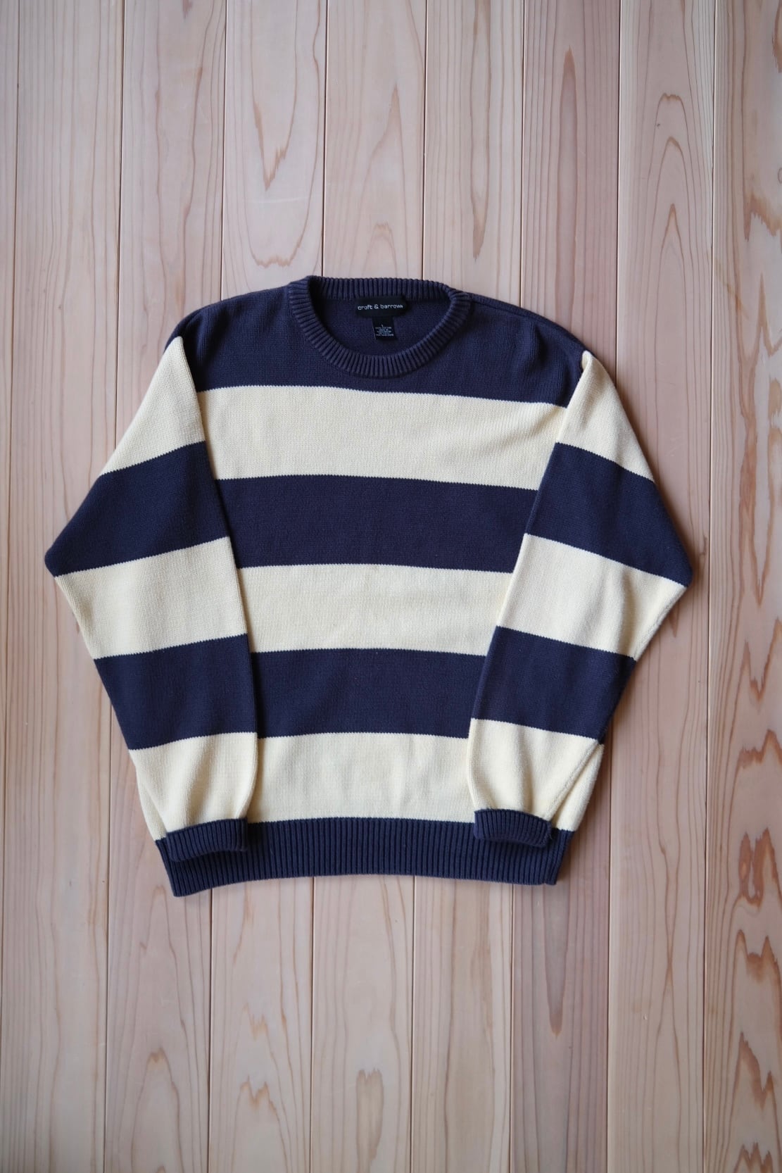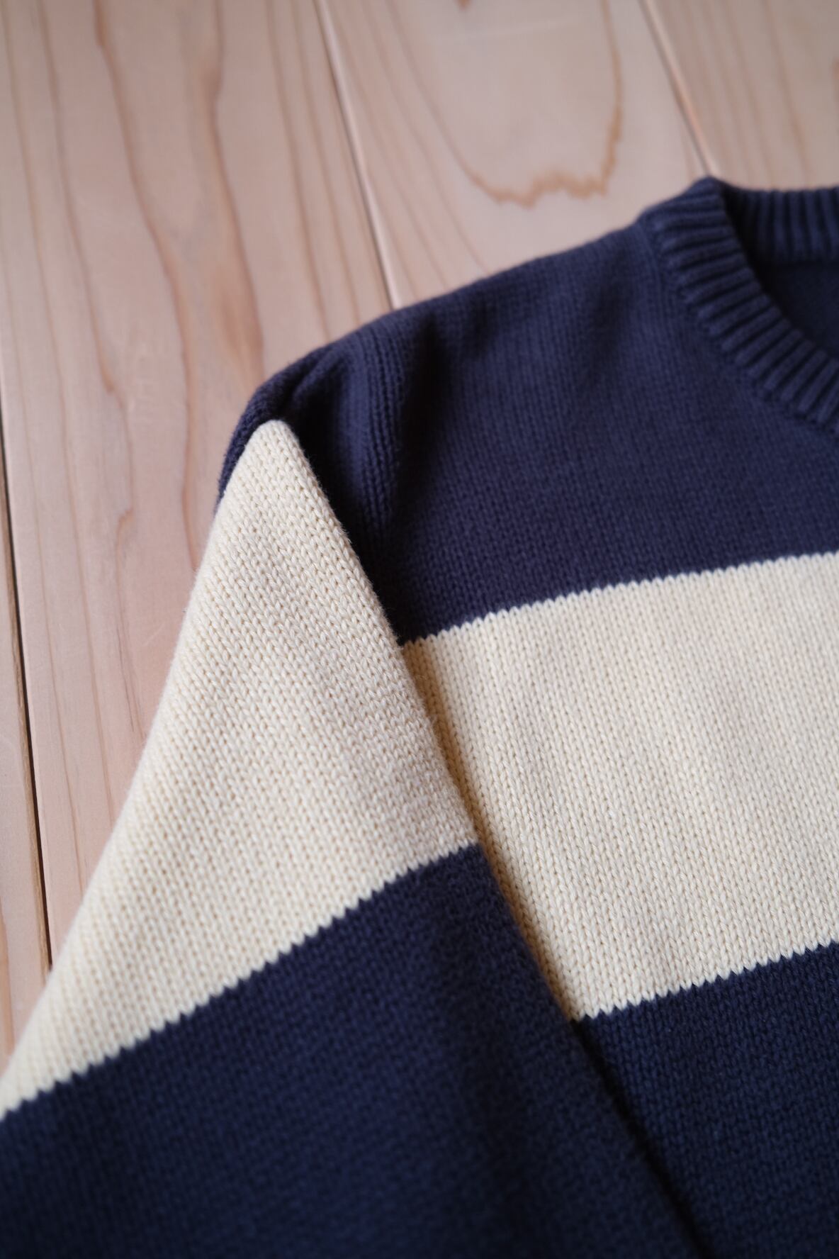 ざっくり着たい太いボーダーのコットンニット。アイボリー×ネイビーでほっこり。