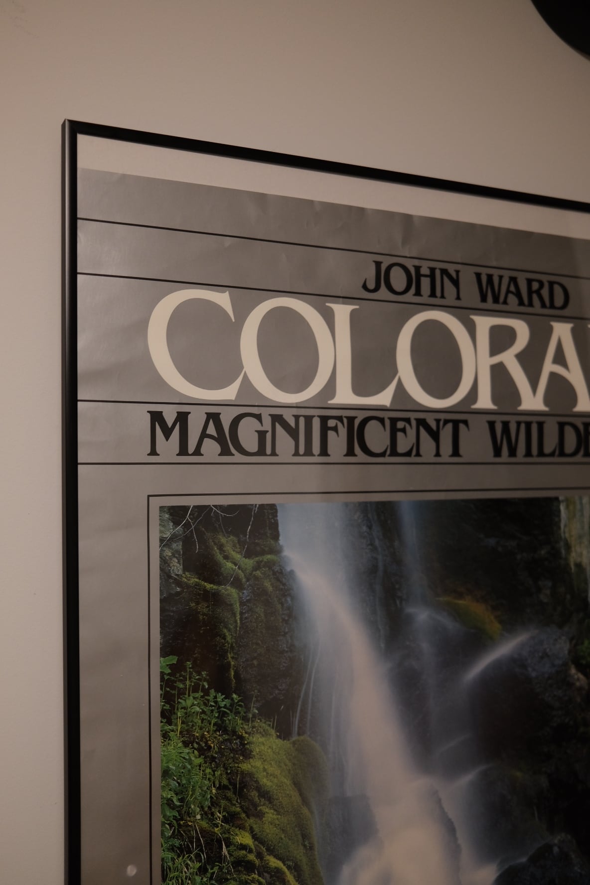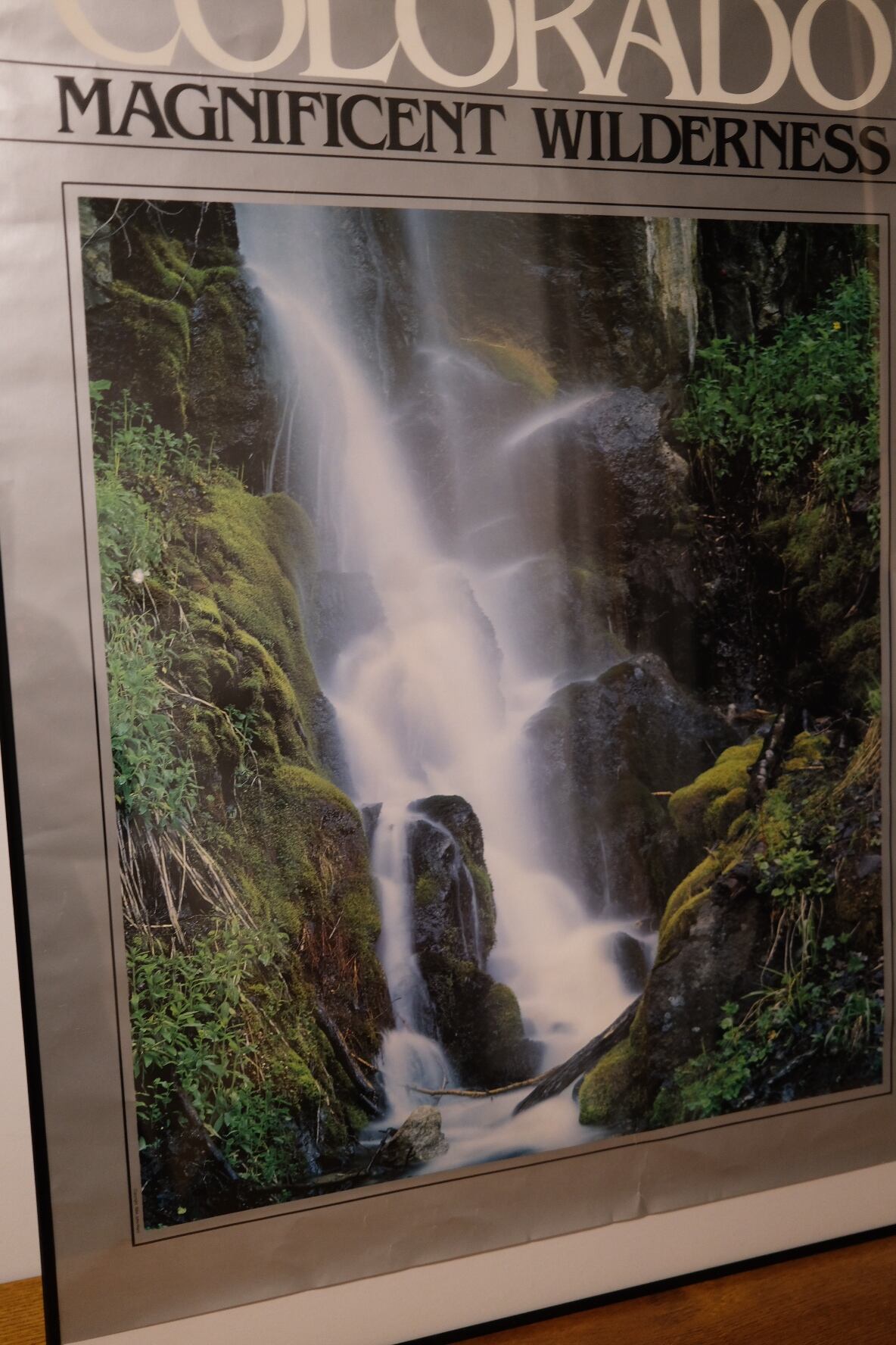 写真家 John Ward による「COLORADO / Magnificent Wilderness」シリーズの一枚で、ロッキー山脈の深い渓谷に流れる滝を切り取った作品です。