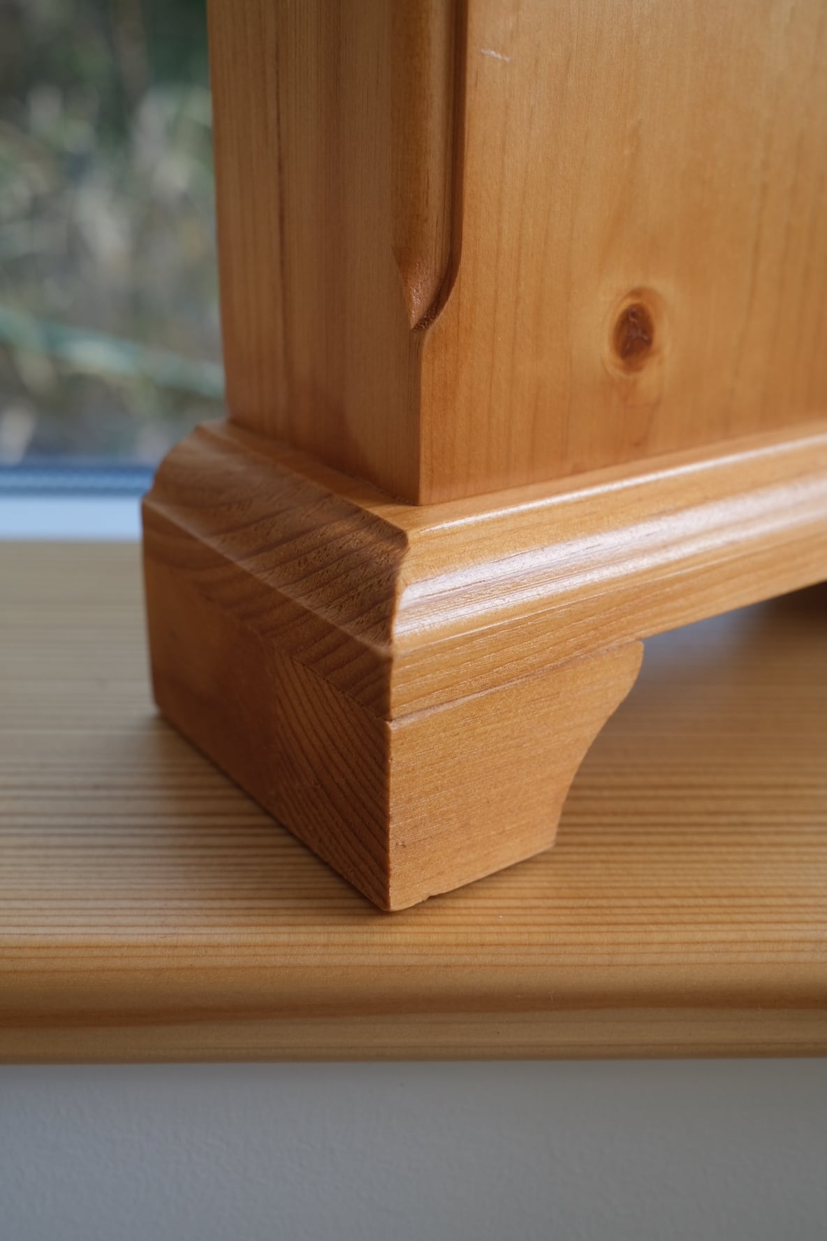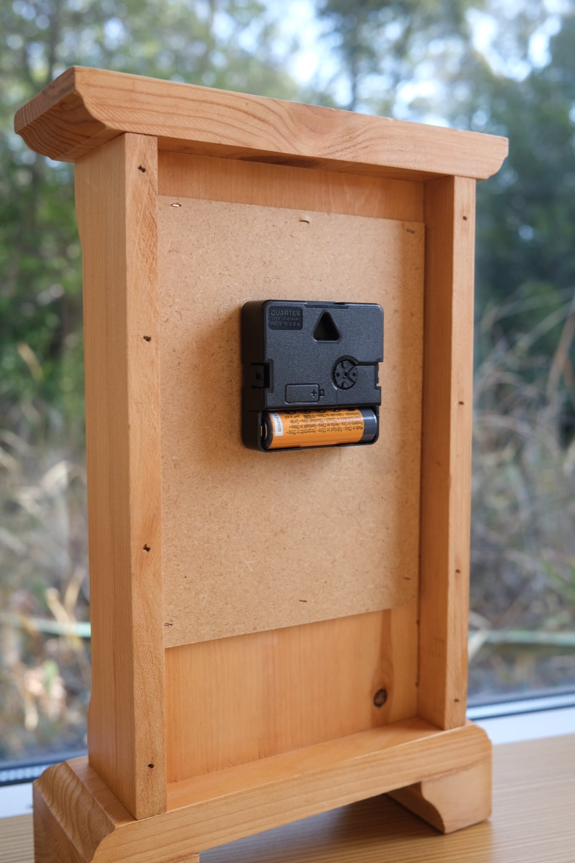 暖炉の上のマントルピースを飾るための時計で、クラシックな形と木の温もりが温かみがあってよいです。