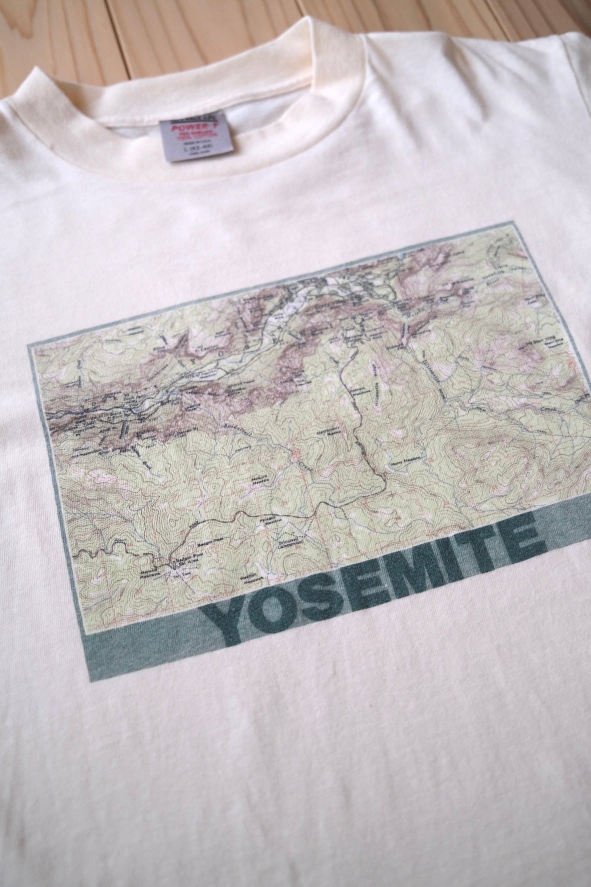 この一枚は、そんなヨセミテの地形図を大胆に落とし込んだ1980年代のプリントTシャツ。