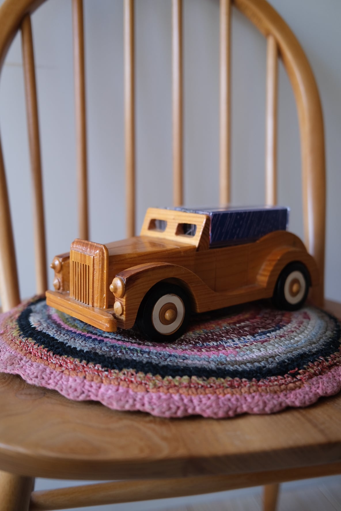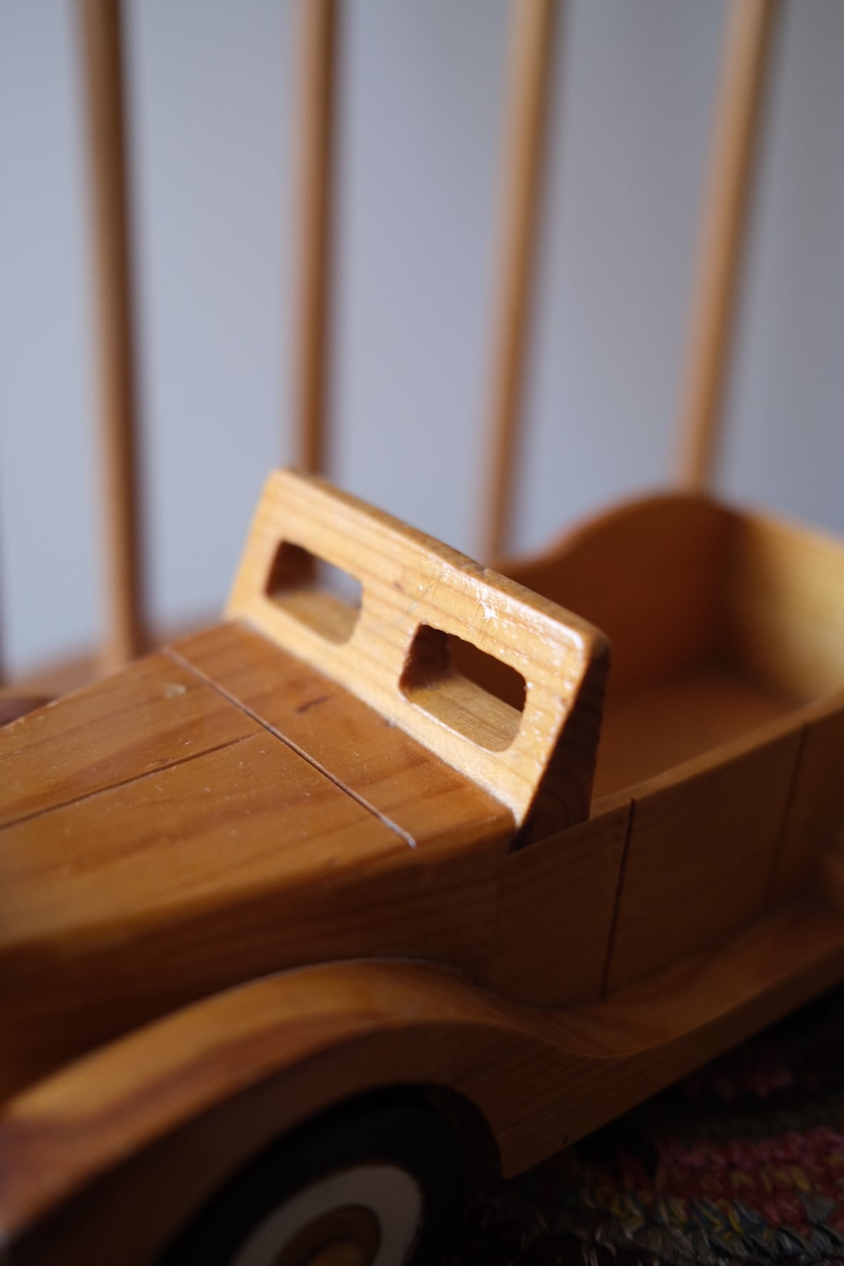 無垢材のやわらかな手触り、丸みのあるフォルム、素朴な車輪のデザインなど、どこか“アメリカの家庭に置いてありそうな温かさ”を感じさせる雰囲気が最高です。